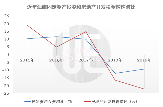 對(duì)比數(shù)據(jù)顯示:海南房地產(chǎn)投資占GDP比重已從2017年近一半,下降到2019年四分之一左右。