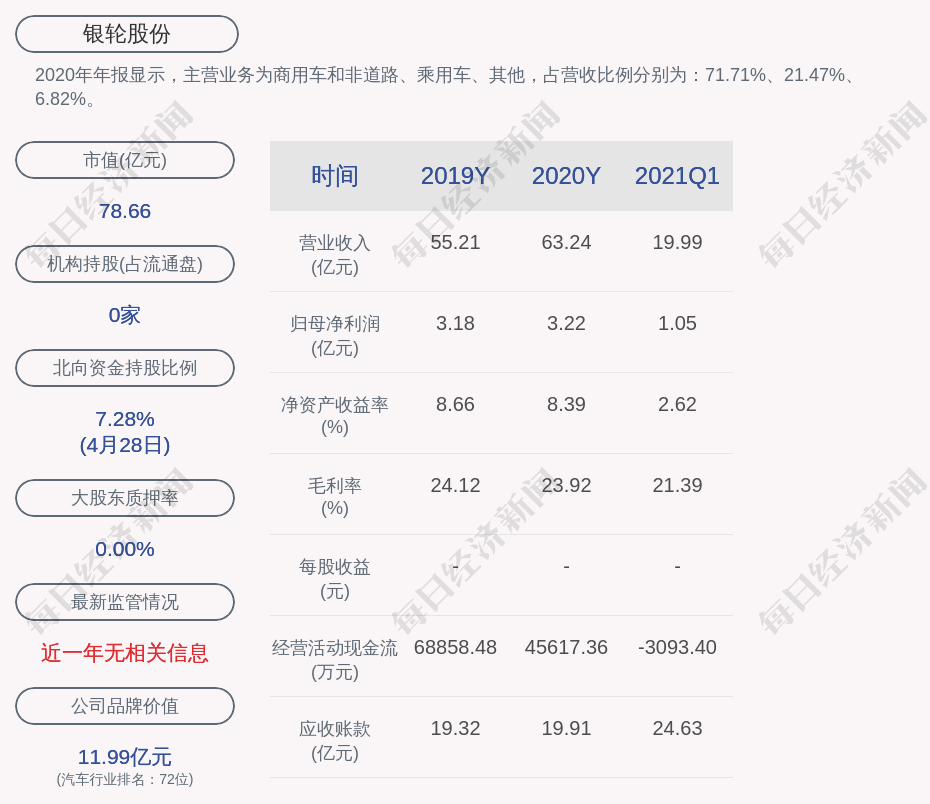 2020年年報顯示,銀輪股份的主營業(yè)務(wù)為商用車和非道路、乘用車、其他,占營收比例分別為:71.71%、21.47%、6.82%。