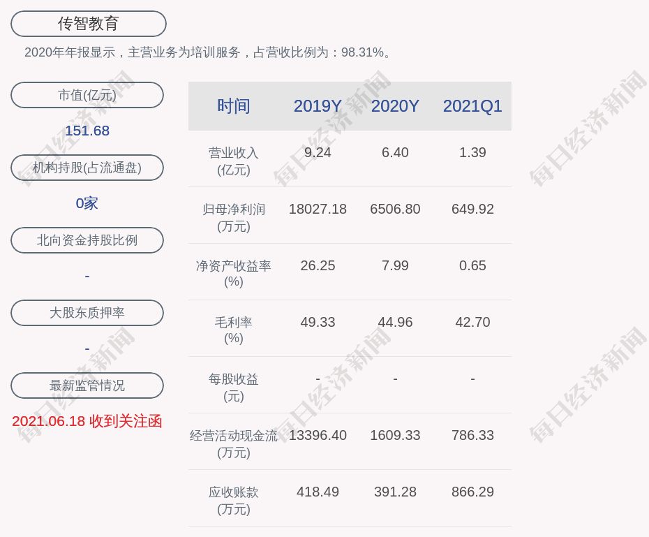 2020年年報顯示,傳智教育的主營業(yè)務(wù)為培訓(xùn)服務(wù),占營收比例為:98.31%。
