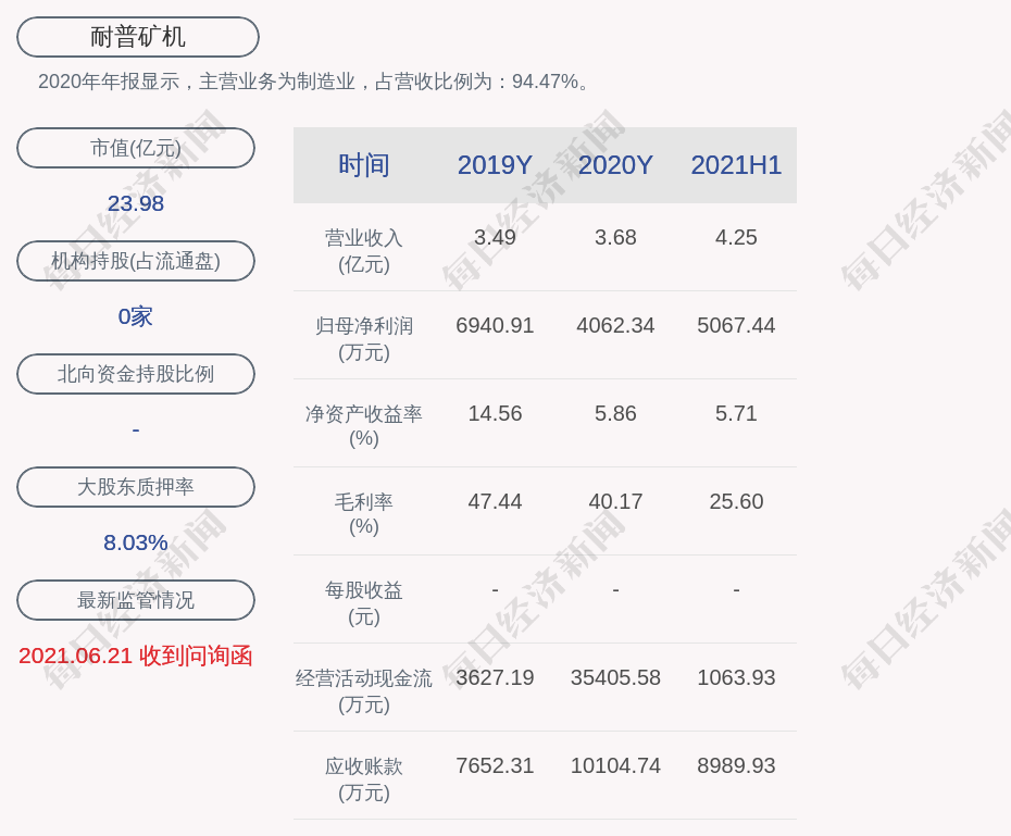 2020年年報顯示,耐普礦機(jī)的主營業(yè)務(wù)為制造業(yè),占營收比例為:94.47%。