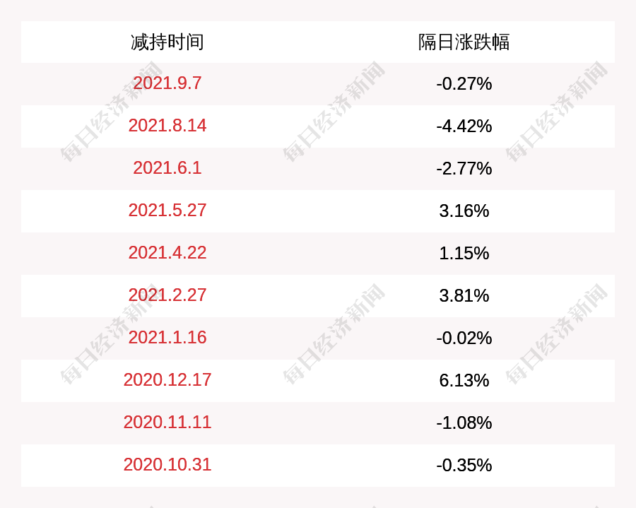 3. 宏發(fā)股份上次發(fā)布減持公告是2021年09月07日,第二個交易日下跌0.27%,宏發(fā)股份近一年共發(fā)布11次減持類公告。更多關(guān)鍵信息,請搜索“道達(dá)號”。