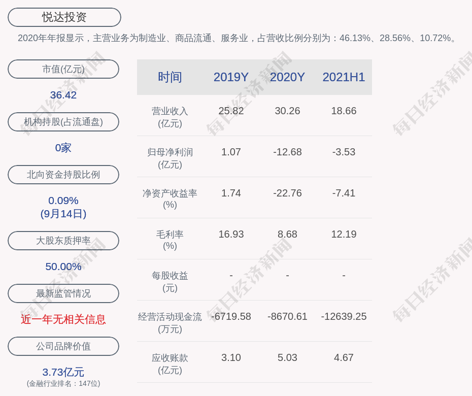 2020年年報顯示,悅達投資的主營業(yè)務為制造業(yè)、商品流通、服務業(yè),占營收比例分別為:46.13%、28.56%、10.72%。