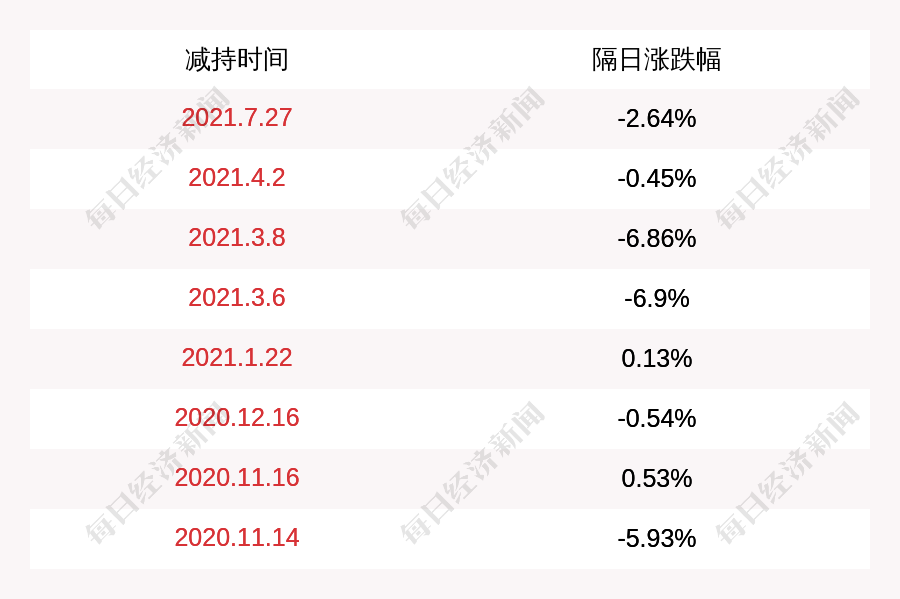 3. 中微公司上次發(fā)布減持公告是2021年07月27日,第二個(gè)交易日下跌2.64%,中微公司近一年共發(fā)布9次減持類公告。更多關(guān)鍵信息,請(qǐng)搜索“道達(dá)號(hào)”。