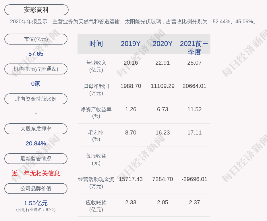 2020年年報顯示,安彩高科的主營業(yè)務(wù)為天然氣和管道運(yùn)輸、太陽能光伏玻璃,占營收比例分別為:52.44%、45.06%。