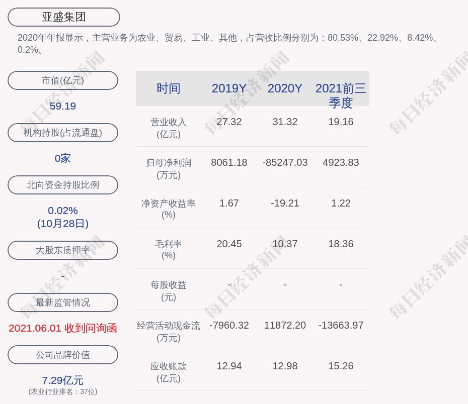2020年年報(bào)顯示,亞盛集團(tuán)的主營(yíng)業(yè)務(wù)為農(nóng)業(yè)、貿(mào)易、工業(yè)、其他,占營(yíng)收比例分別為:80.53%、22.92%、8.42%、0.2%。