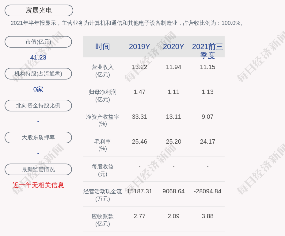 2021年半年報顯示,宸展光電的主營業(yè)務為計算機和通信和其他電子設備制造業(yè),占營收比例為:100.0%。