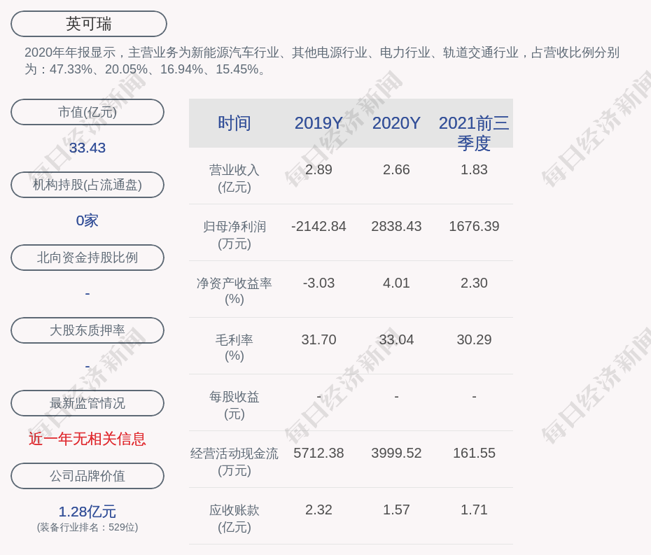 2020年年報顯示,英可瑞的主營業(yè)務(wù)為新能源汽車行業(yè)、其他電源行業(yè)、電力行業(yè)、軌道交通行業(yè),占營收比例分別為:47.33%、20.05%、16.94%、15.45%。