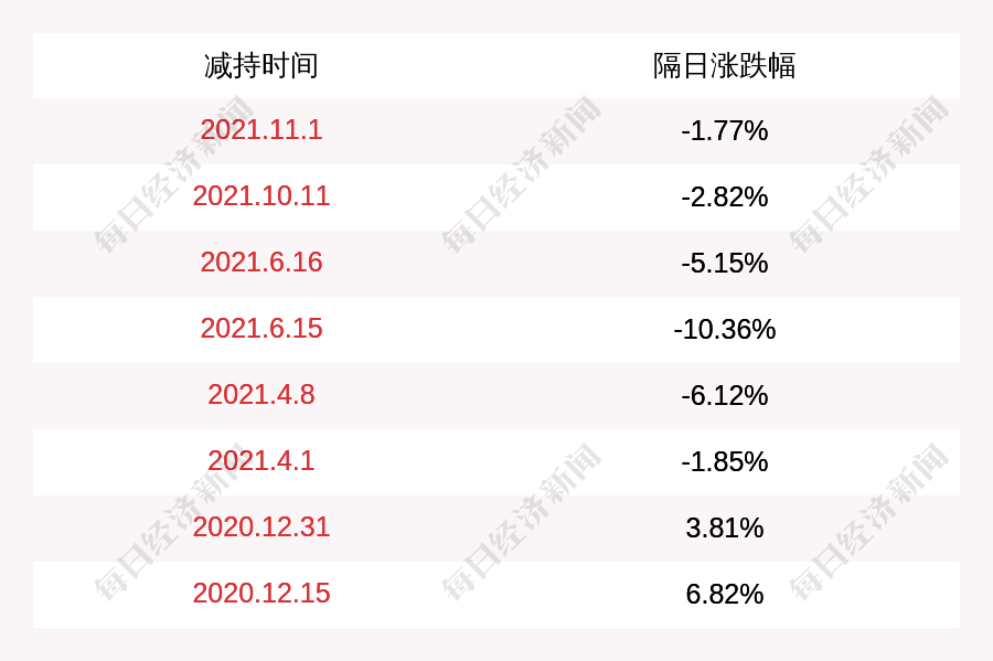 2. 英可瑞上次發(fā)布減持公告是2021年11月01日,第二個交易日下跌1.77%,英可瑞近一年共發(fā)布9次減持類公告。更多關(guān)鍵信息,請搜索“道達(dá)號”。