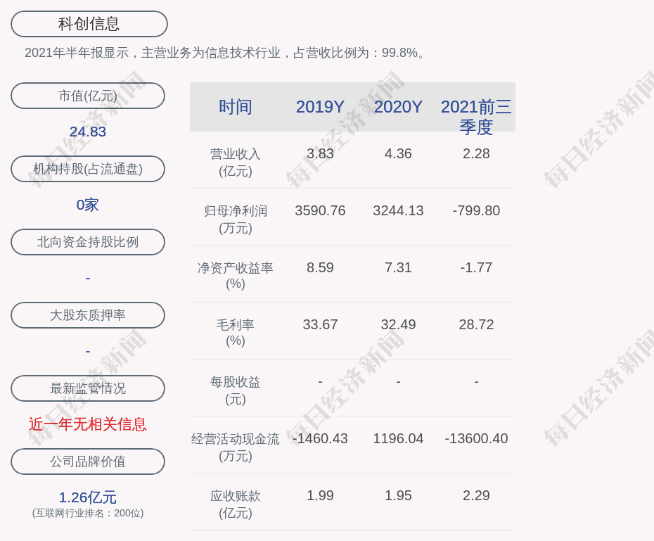 2021年半年報(bào)顯示,科創(chuàng)信息的主營(yíng)業(yè)務(wù)為信息技術(shù)行業(yè),占營(yíng)收比例為:99.8%。