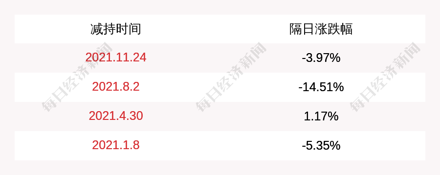 2. 隆利科技上次發(fā)布減持公告是2021年11月24日,第二個(gè)交易日下跌3.97%,隆利科技近一年共發(fā)布5次減持類公告。