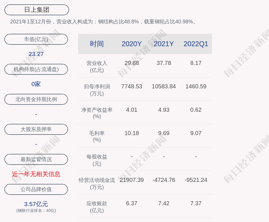 2021年1至12月份,日上集團(tuán)的營業(yè)收入構(gòu)成為:鋼結(jié)構(gòu)占比48.8%,載重鋼輪占比40.98%。