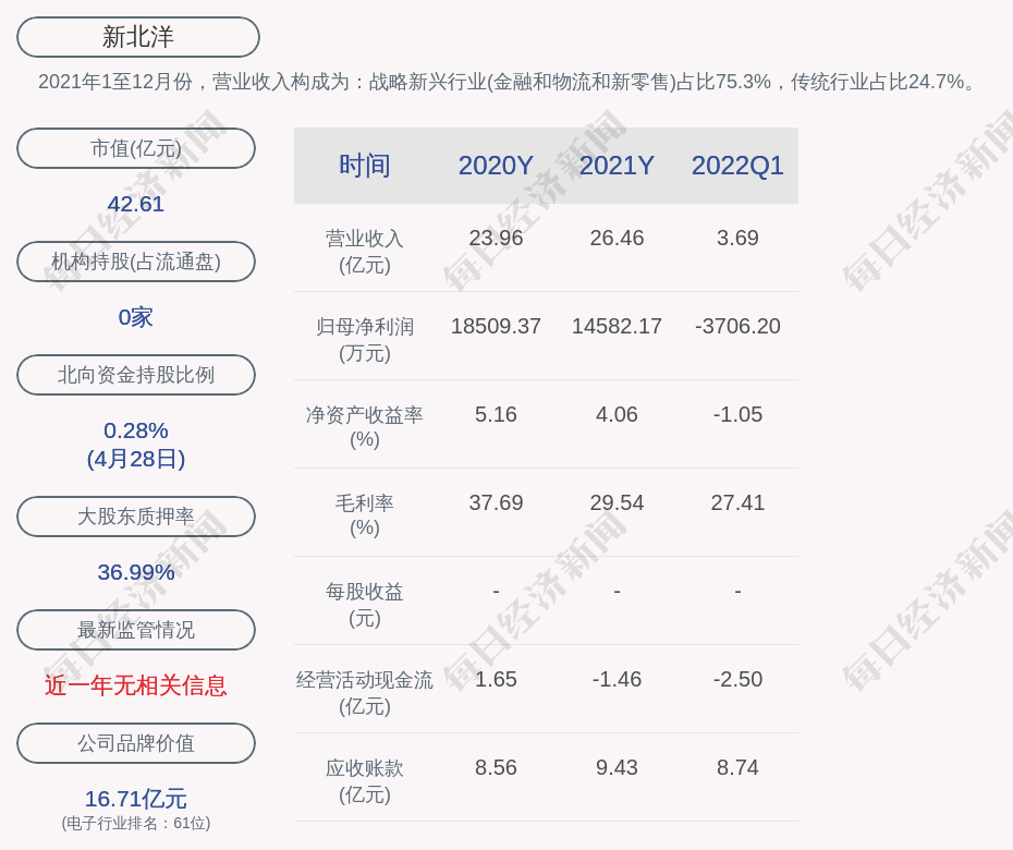 2021年1至12月份,新北洋的營(yíng)業(yè)收入構(gòu)成為:戰(zhàn)略新興行業(yè)(金融和物流和新零售)占比75.3%,傳統(tǒng)行業(yè)占比24.7%。