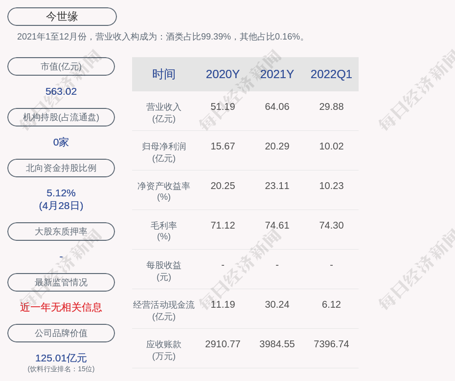 2021年1至12月份,今世緣的營(yíng)業(yè)收入構(gòu)成為:酒類(lèi)占比99.39%,其他占比0.16%。