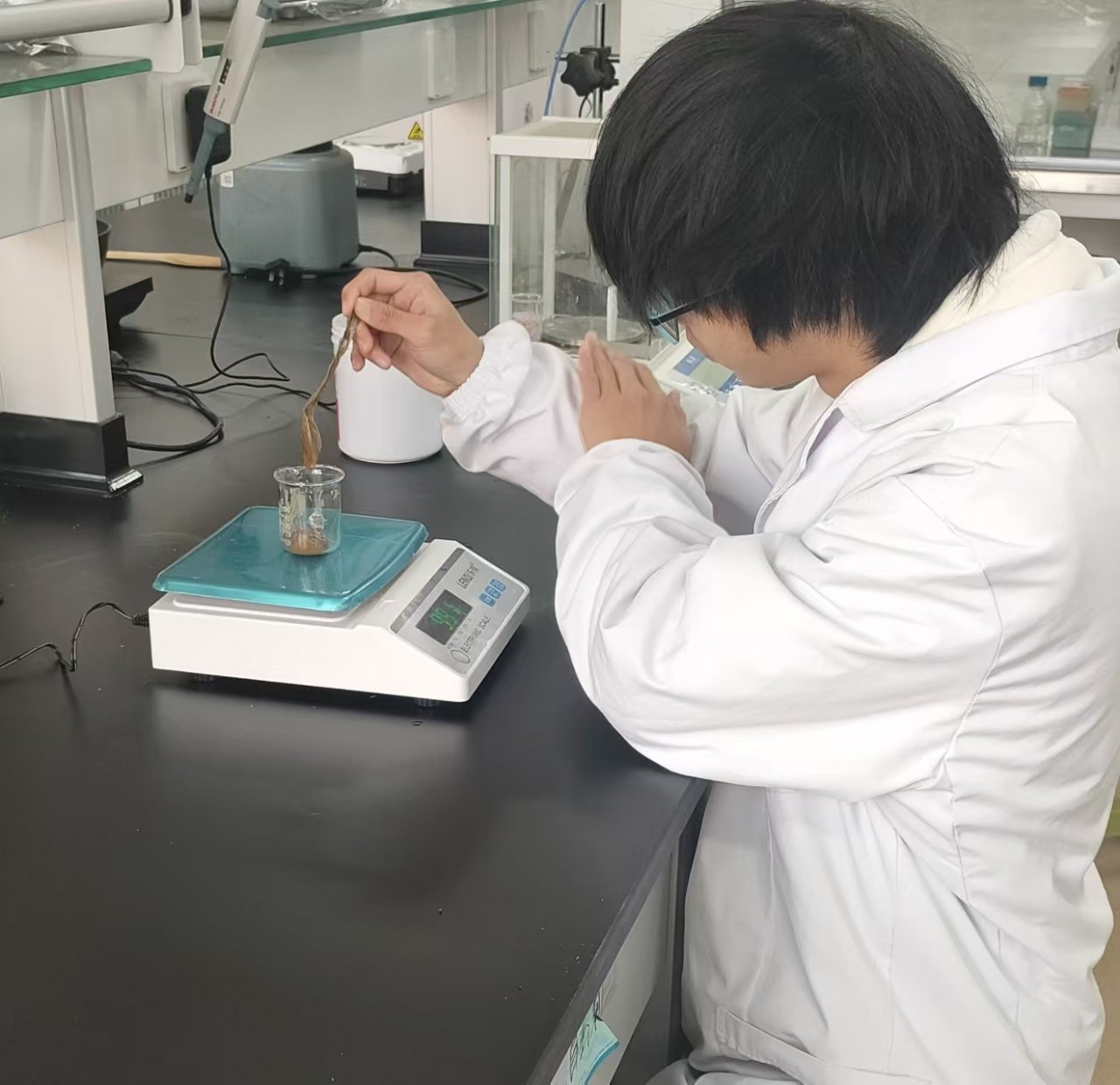 成都大學(xué)學(xué)生劉善超正在做食品檢測。受訪者供圖