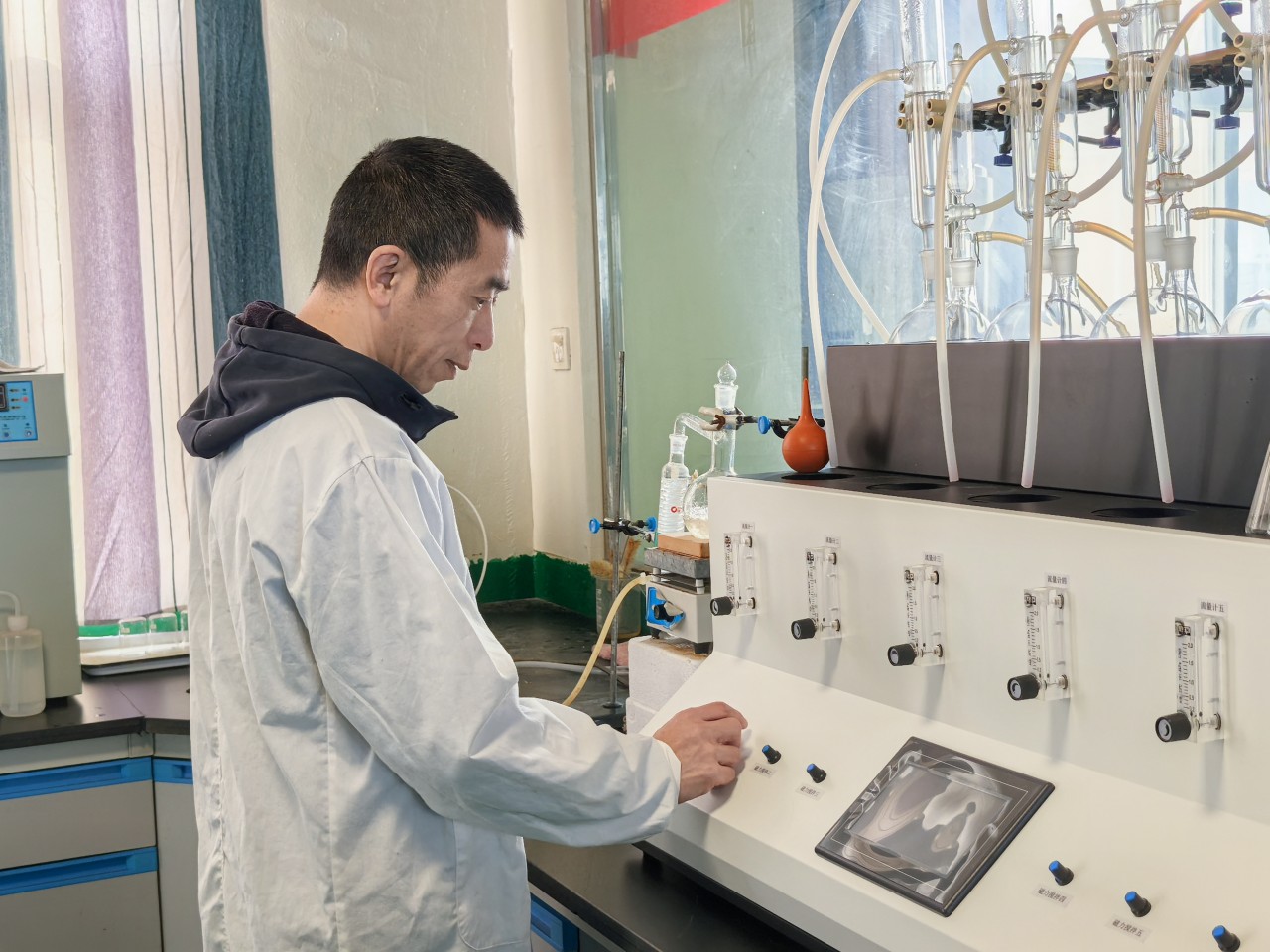 檢驗(yàn)員唐強(qiáng)正進(jìn)行檢測。