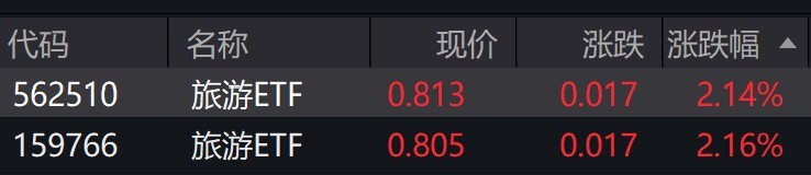 受盤面影響,旅游ETF漲超2%。