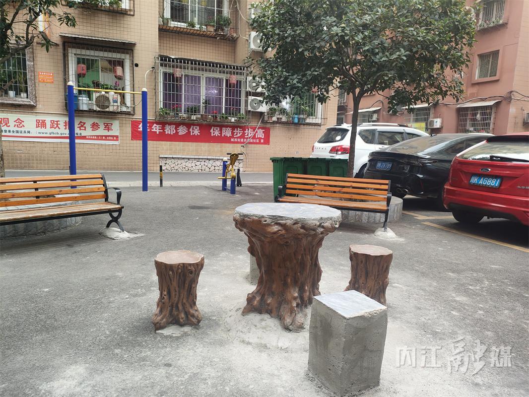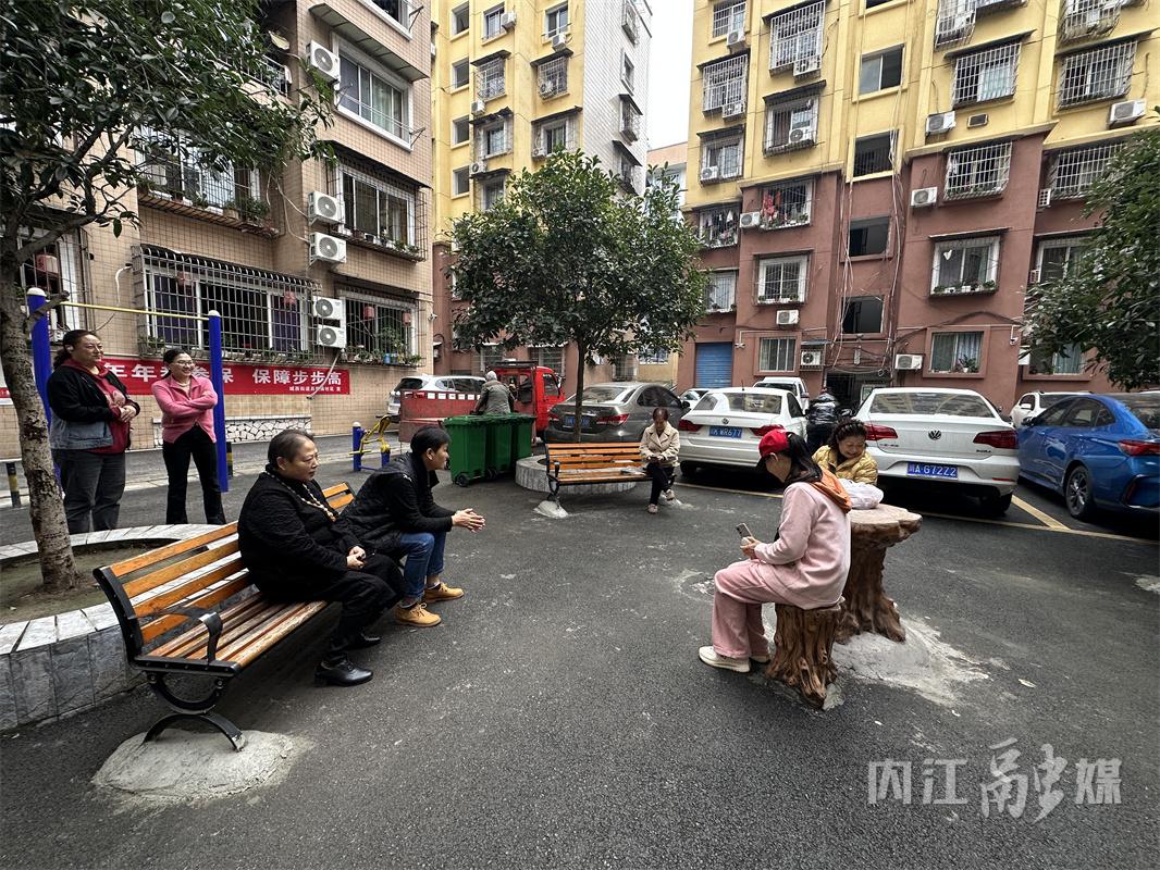四川鐵道職業(yè)學(xué)院內(nèi)江校區(qū)家屬區(qū)內(nèi),幾位老人坐在嶄新的休閑椅上拉著家常。幾步之外,原園林路小區(qū)的居民推著嬰兒車(chē),從容穿過(guò)一道已消失的“邊界”,走進(jìn)這片共享的院落。