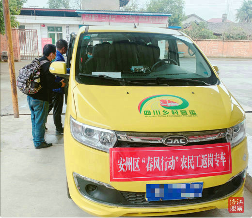 安州區(qū)“春風行動”中“小黃車”作為農民工返崗專車