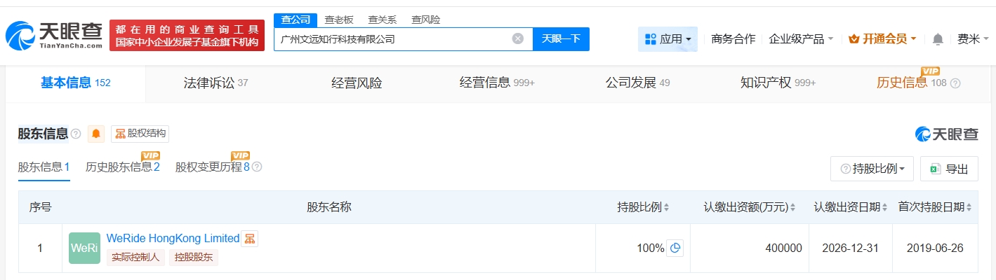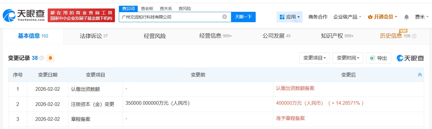 每經(jīng)AI快訊,天眼查App顯示,近日,廣州文遠(yuǎn)知行科技有限公司發(fā)生工商變更,注冊(cè)資本由35億元人民幣增至40億元人民幣,增幅約14%。廣州文遠(yuǎn)知行科技有限公司成立于2018年1月,法定代表人為韓旭,經(jīng)營范圍包括物聯(lián)網(wǎng)技術(shù)研發(fā)、人工智能基礎(chǔ)軟件開發(fā)、人工智能應(yīng)用軟件開發(fā)等。股東信息顯示,該公司由WeRideHongKongLimited全資持股。
