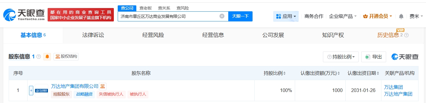 每經(jīng)AI快訊,天眼查App顯示,近日,濟(jì)南市章丘區(qū)萬達(dá)商業(yè)發(fā)展有限公司成立,法定代表人為田臣,注冊資本1000萬元人民幣,經(jīng)營范圍為商業(yè)綜合體管理服務(wù)、以自有資金從事投資活動、非居住房地產(chǎn)租賃、物業(yè)管理。股東信息顯示,該公司由萬達(dá)地產(chǎn)集團(tuán)有限公司全資持股。