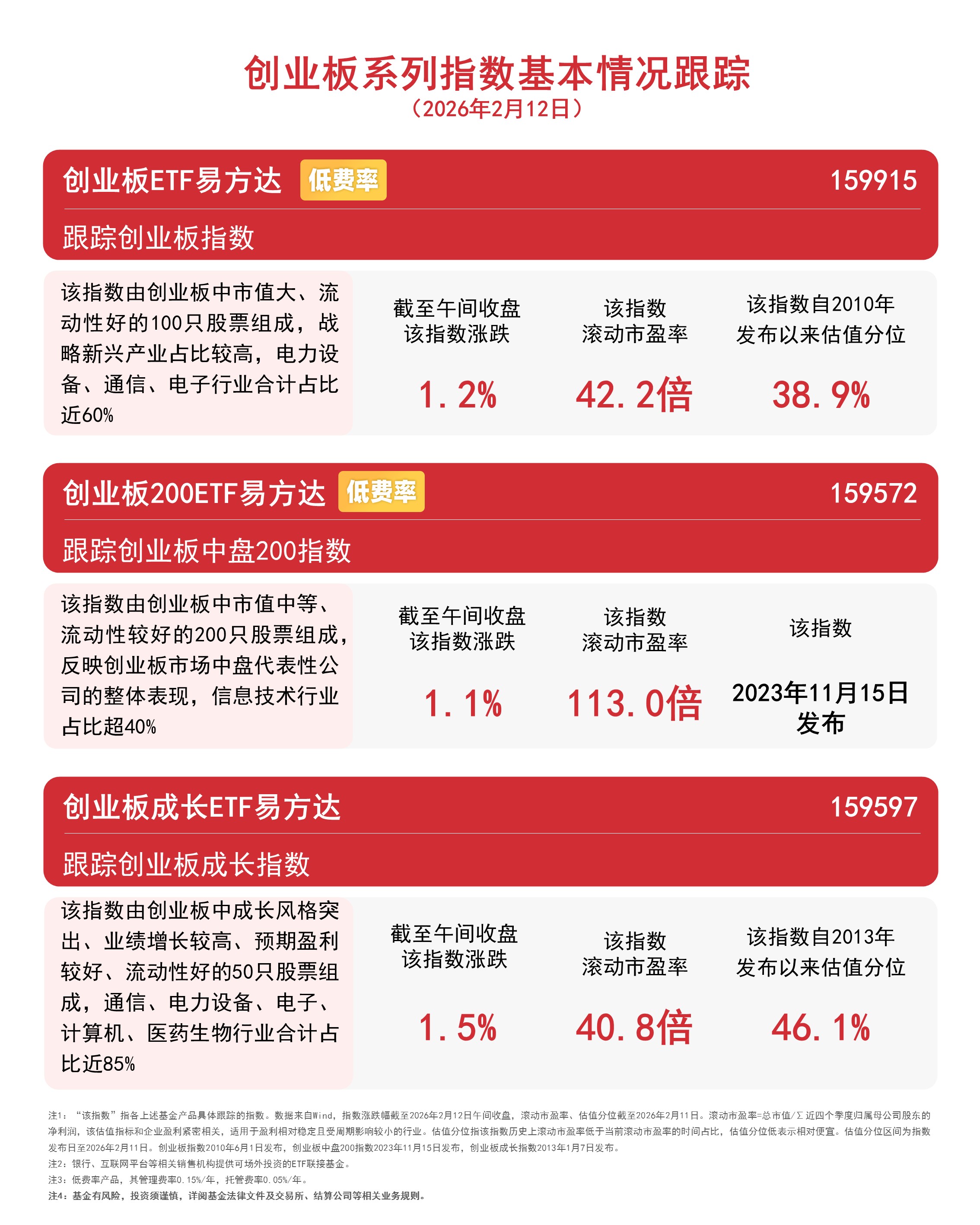 截至午間收盤,創(chuàng)業(yè)板成長(zhǎng)指數(shù)上漲1.5%,創(chuàng)業(yè)板指數(shù)上漲1.2%,創(chuàng)業(yè)板中盤200指數(shù)上漲1.1%,資金交投活躍,創(chuàng)業(yè)板ETF易方達(dá)(159915)半日成交額超20億元,較昨日有所放量。