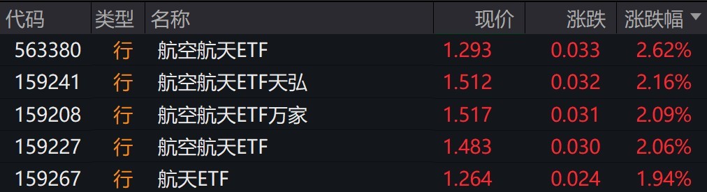 受盤面影響,航空航天相關(guān)ETF漲超2%。