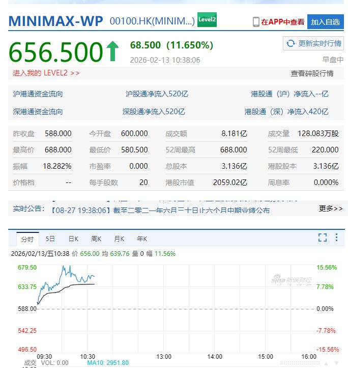 2月13日,MINIMAX-WP、智譜繼續(xù)大漲,截至發(fā)稿,分別漲超11%、16%。