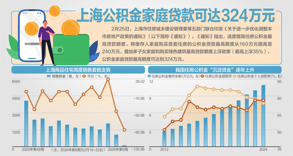 “此次將首套公積金貸款額度從160萬元提至240萬元,疊加多子女、綠色建筑上浮政策后最高達324萬元,適配上海樓市高總價的特征,可有效降低剛需與改善家庭的首付和月供壓力。多子女家庭二套房貸款額度上浮20%的政策,將精準匹配這類家庭的居住升級需求,也貼合人口結(jié)構(gòu)變化趨勢。公積金政策的優(yōu)化,將有效提升改善家庭購房能力,推動上海二手房流通性提升,進而帶動新房市場改善需求釋放,形成一二手市場雙向賦能?!彼a充說。