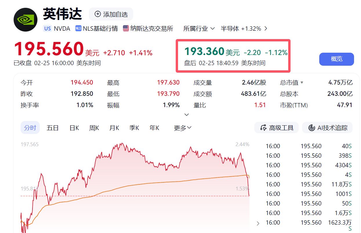 英偉達(dá)股價(jià)盤后轉(zhuǎn)跌,此前一度漲4%。