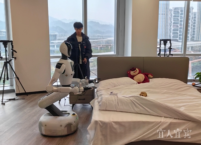 位于宜賓市高鐵南片區(qū)的西南具身智能訓(xùn)練中心,機(jī)器人正在學(xué)習(xí)疊被子 黃平 攝