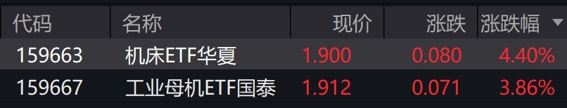 受盤面影響,機(jī)床、工業(yè)母機(jī)相關(guān)ETF漲約4%。