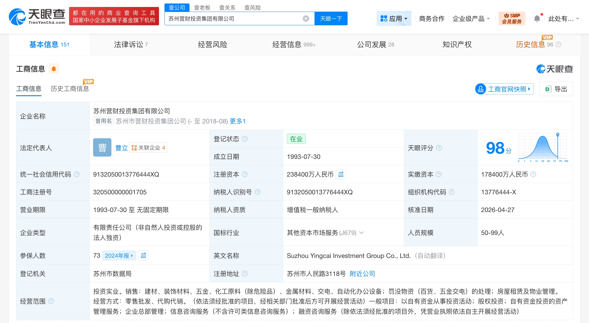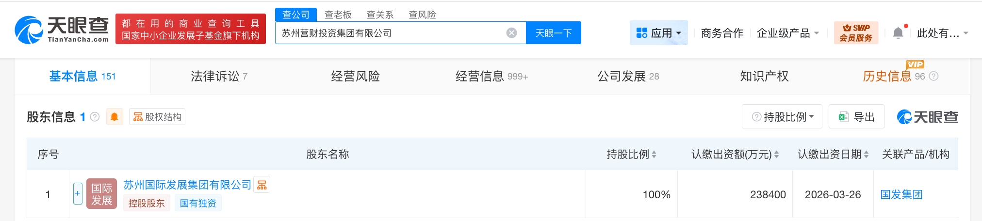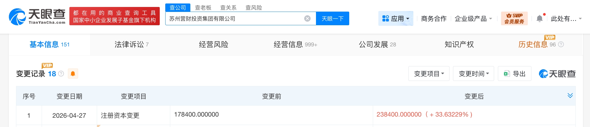 每經(jīng)AI快訊,天眼查App顯示,近日,蘇州營財(cái)投資集團(tuán)有限公司發(fā)生工商變更,注冊資本由17.84億元人民幣增至23.84億元人民幣,增幅約34%。該公司成立于1993年7月,法定代表人為曹立,經(jīng)營范圍含投資實(shí)業(yè),銷售建材、裝飾材料、五金、化工原料、金屬材料、交電、自動(dòng)化辦公設(shè)備,罰沒物資的處理等。股東信息顯示,該公司由蘇州國際發(fā)展集團(tuán)有限公司全資持股。