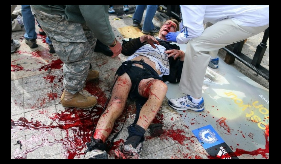 波士頓爆炸現(xiàn)場:如戰(zhàn)區(qū) 有人被炸斷肢體