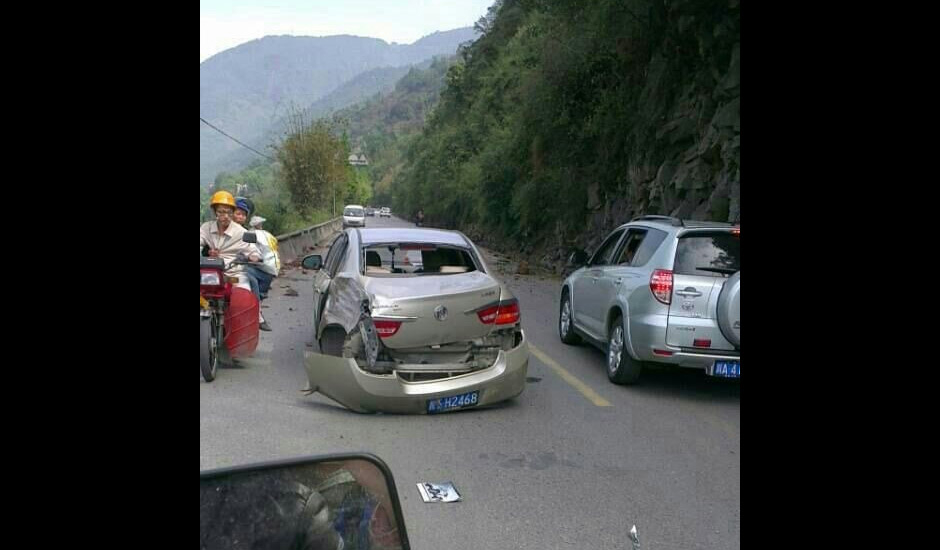 每經(jīng)前線記者李偉: 去往災(zāi)區(qū)路上很多道口封閉,只有不斷繞道,目前正繞道于滎經(jīng)縣道道路險峻,路邊一些因地震滾落的大石頭隨處可見,遇到四川救援隊。今天尚未吃一餐飯呢!餓極!