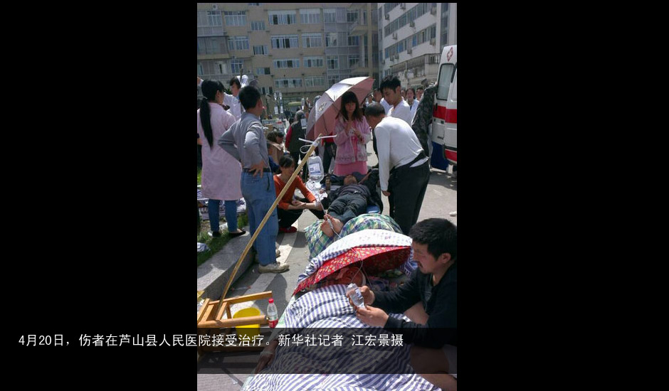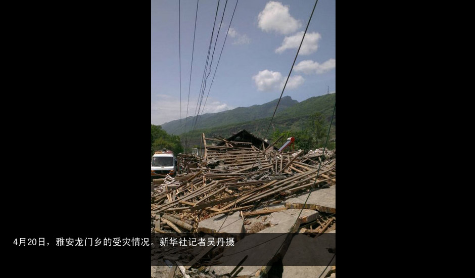 4月23日,傍晚,下了一天的雨總算消停了。 剛剛在媒體中心發(fā)完稿件和圖片,捧著從安置點領(lǐng)來的盒飯,相對悠閑得看著周圍的同行奮力地敲下一行行字,剪裁著一張張圖片……